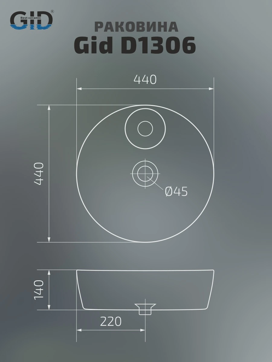 Ссылка на фотографию на белом фоне (https://cloud.mail.ru/public/y6Ut/ywV7QSPCQ) — Ссылка на инструкции и схемы (https://cloud.mail.ru/public/fEEZ/wjeFrGsH4) — Раковины серии Esfera с круглой чашей — это эталон европейских стандартов и испанского мастерства. Раковина накладная GiD D1306 это стильная раковина выполненная из высококачественной мелкопористой керамики с глянцевым покрытием, что обеспечивает долговечность и легкость в уходе. Круглая форма придает ей современный и стильный вид, а эргономичная чаша удобна для повседневного использования. Накладная конструкция позволяет легко установить раковину на столешнице, предоставляя дополнительное пространство вокруг. Оснащена отверстием под смеситель, что делает её удобным выбором для современной ванной комнаты.