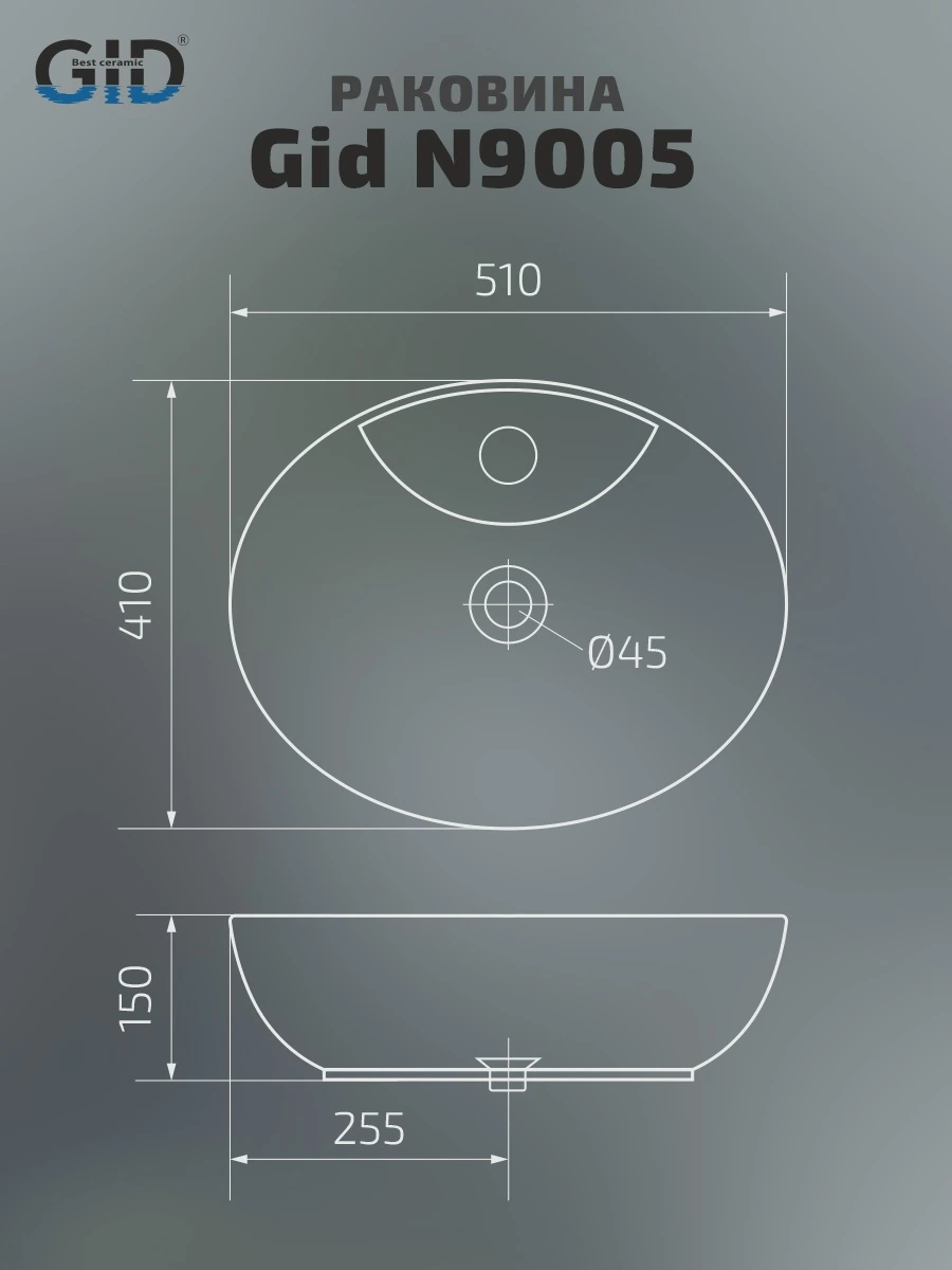 Ссылка на фотографию на белом фоне (https://cloud.mail.ru/public/3biA/TGnSxg2xf) — Ссылка на инструкции и схемы (https://cloud.mail.ru/public/p8Es/de7woa5eq) — Серия Lago овальной формы — это испанское качество, соответствующее современным европейским требованиям. Раковина накладная GiD N9005 - это стильная модель, выполненная из высококачественной мелкопористой керамики с белым глянцевым покрытием, что обеспечивает долговечность и легкость в уходе. Овальная форма придает ей гармоничный и элегантный вид, а эргономичная чаша удобна для повседневного использования. Накладная конструкция позволяет легко установить раковину на столешнице, предоставляя дополнительное пространство вокруг. Оснащена отверстием под смеситель, что делает её удобным выбором для современной ванной комнаты.