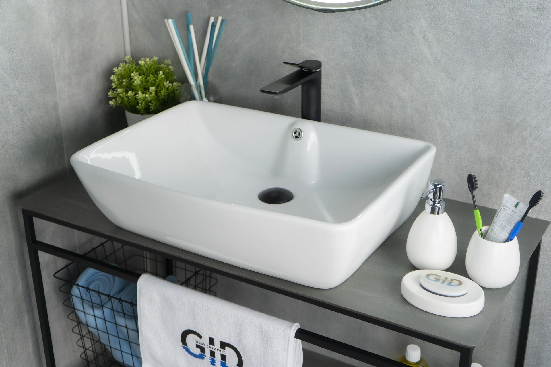 Ссылка на фотографию на белом фоне (https://cloud.mail.ru/public/XX8i/Tw3AjjZcX) — Ссылка на инструкции и схемы (https://cloud.mail.ru/public/SHr9/rkrdqYqdZ) — Серия Geometrico с прямоугольной формой: стиль и практичность с испанским качеством и европейскими стандартами. Накладная раковина GiD N9121 — сочетание элегантного дизайна и практичности для вашей ванной комнаты. Изготовлена из мелкопористой керамики с белым глянцевым покрытием, она придаст интерьеру свежесть и утонченность. Прямоугольная форма обеспечивает оптимальное пространство для комфортного использования. Отсутствие отверстия под смеситель подчеркивает минималистичный стиль, а накладной способ монтажа на столешницу облегчает установку и позволяет создать современный облик ванной комнаты.