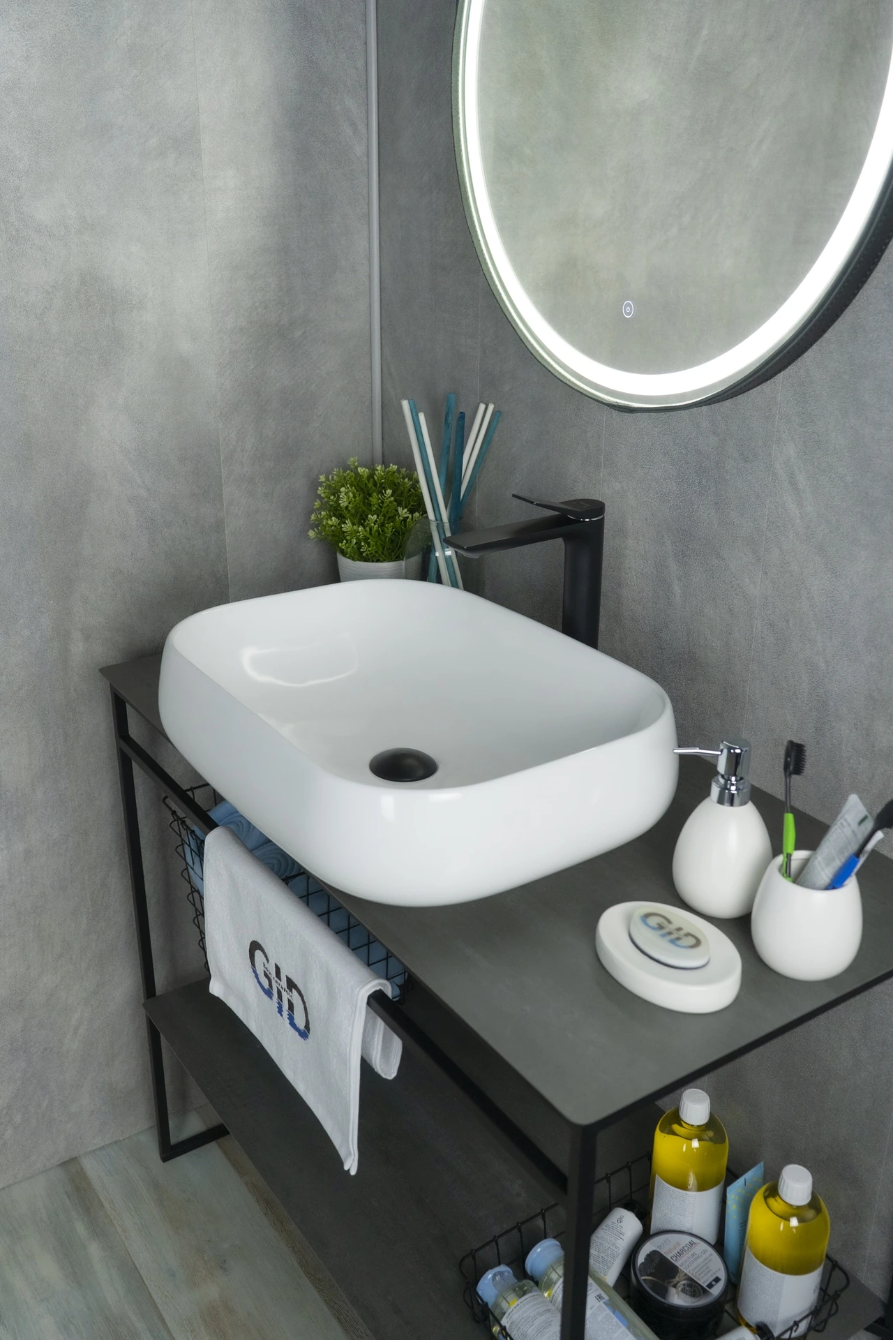 Ссылка на фотографию на белом фоне (https://cloud.mail.ru/public/j8m9/gdFS1mn45) — Ссылка на инструкции и схемы (https://cloud.mail.ru/public/Hasc/YgUv4Gj7F) — Серия Geometrico с прямоугольной формой: стиль и практичность с испанским качеством и европейскими стандартами. Накладная раковина GiD N9243 — сочетание элегантного дизайна и практичности для вашей ванной комнаты. Изготовлена из мелкопористой керамики с белым глянцевым покрытием, она придаст интерьеру свежесть и утонченность. Прямоугольная форма обеспечивает оптимальное пространство для комфортного использования. Отсутствие отверстия под смеситель подчеркивает минималистичный стиль, а накладной способ монтажа на столешницу облегчает установку и позволяет создать современный облик ванной комнаты.