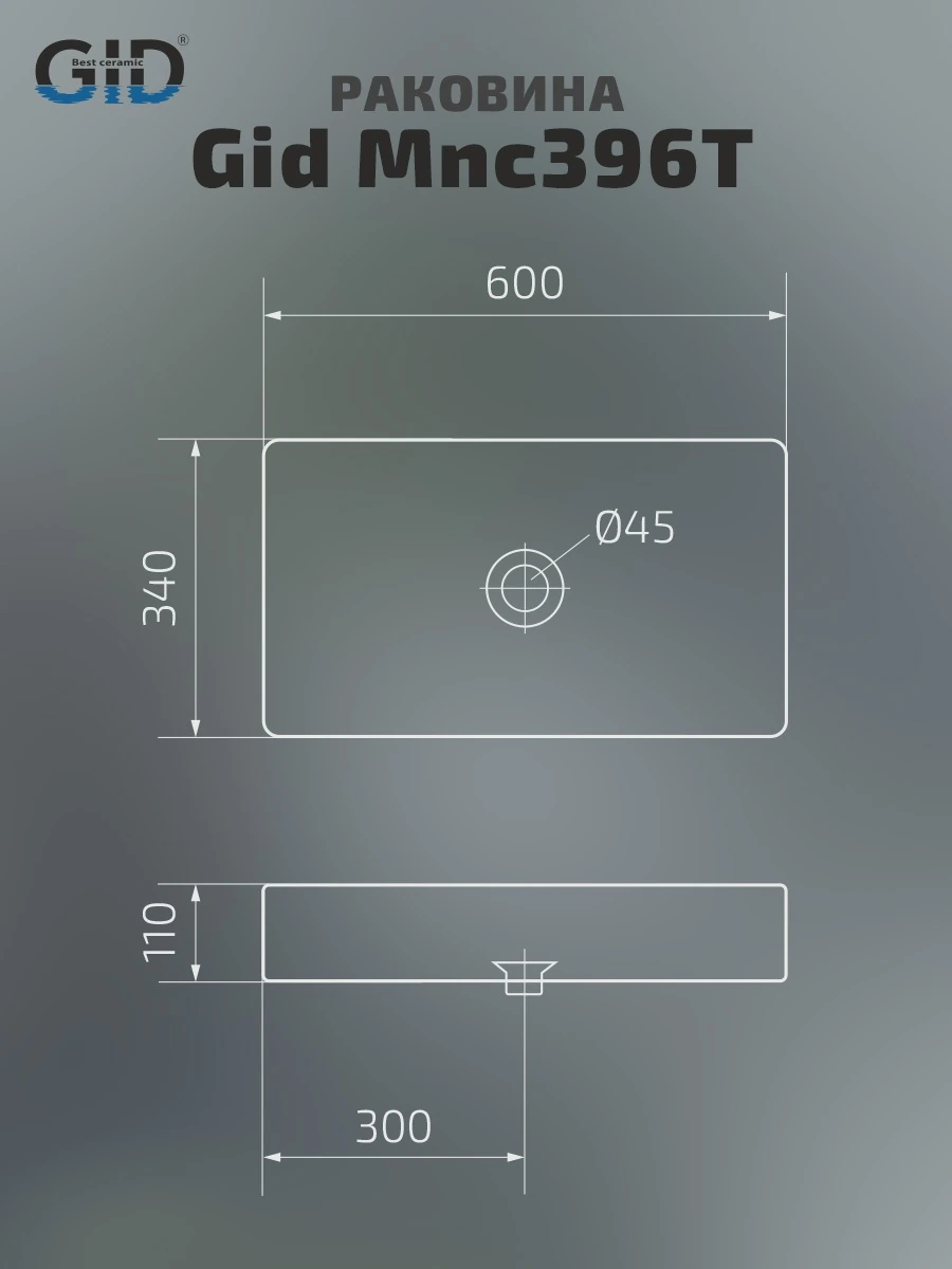 Ссылка на фотографию на белом фоне (https://cloud.mail.ru/public/kAWU/jozDsih7f) — Ссылка на инструкции и схемы (https://cloud.mail.ru/public/DKT7/6kEjarAeS) — Серия Geometrico с прямоугольной формой: стиль и практичность с испанским качеством и европейскими стандартами. Раковина накладная GiD Mnc396T — элегантная модель прямоугольной формы, изготовленная из высококачественной керамики с глянцевой поверхностью, создающей эффект натурального камня. Её строгий и современный дизайн идеально подойдёт для ванных комнат в минималистичном или современном стиле. Благодаря отсутствию отверстия под смеситель раковина позволяет реализовать различные дизайнерские решения по размещению смесителя. Раковина предназначена для установки на столешницу, подчёркивая стильный и функциональный интерьер ванной комнаты.