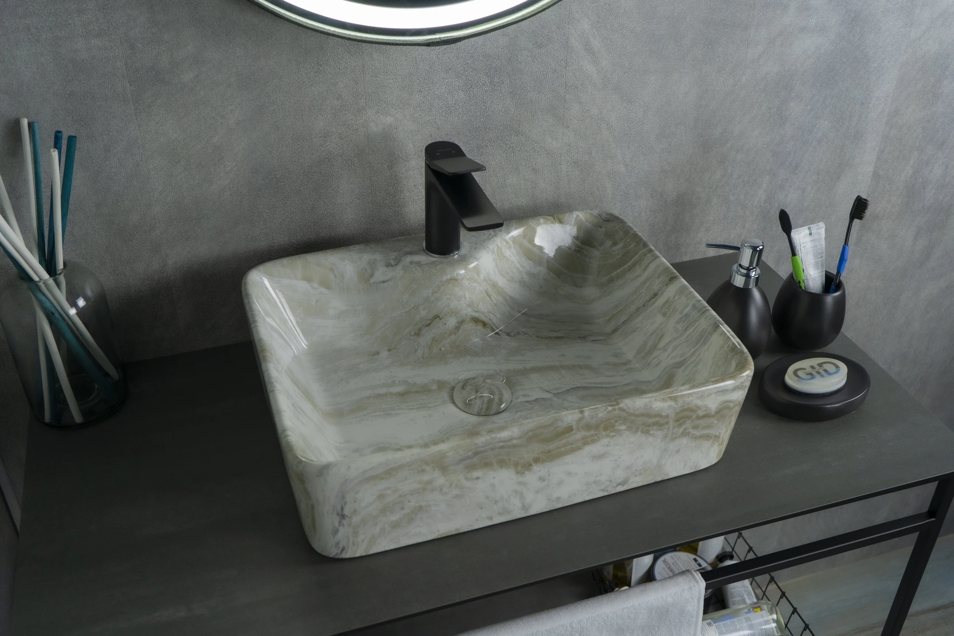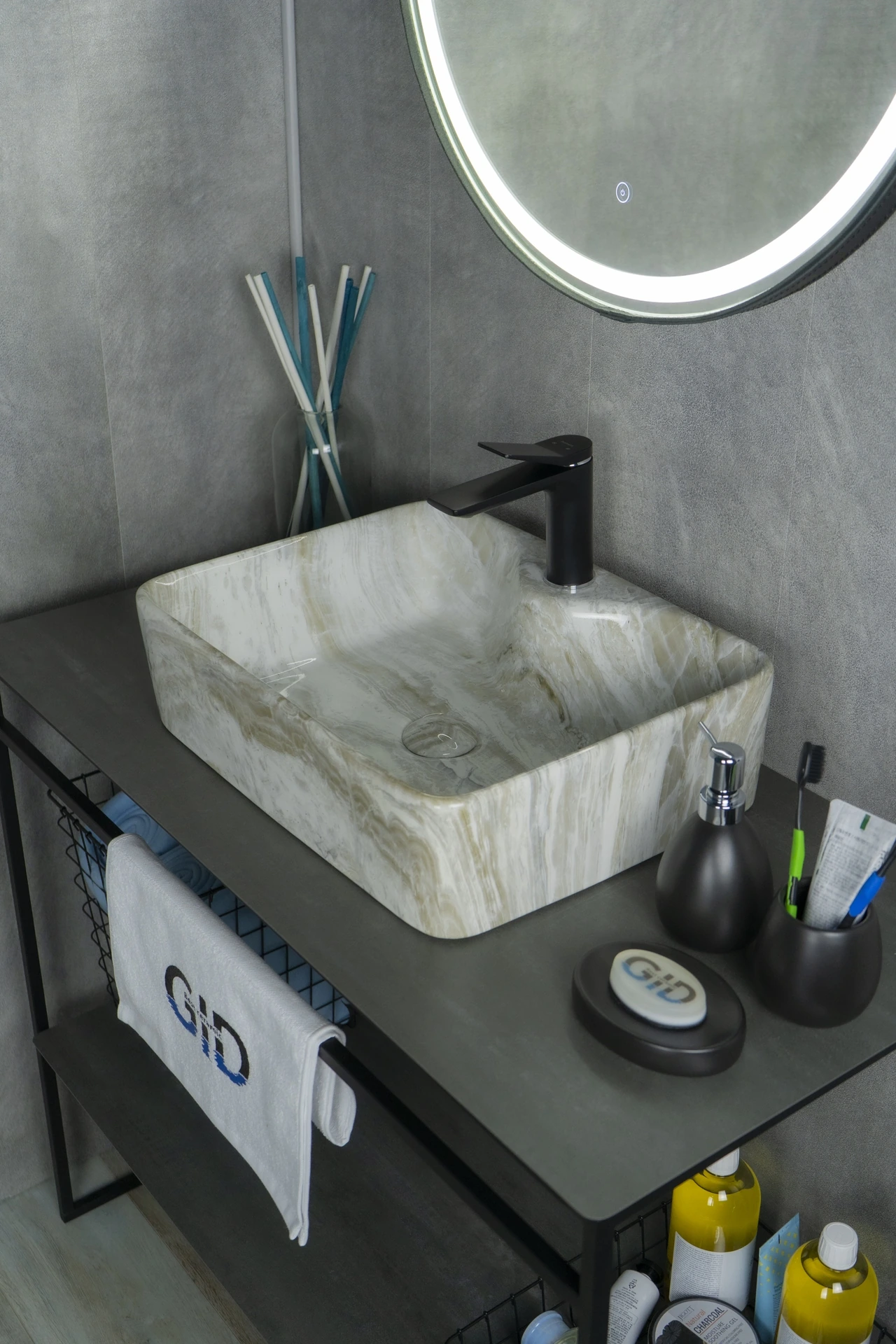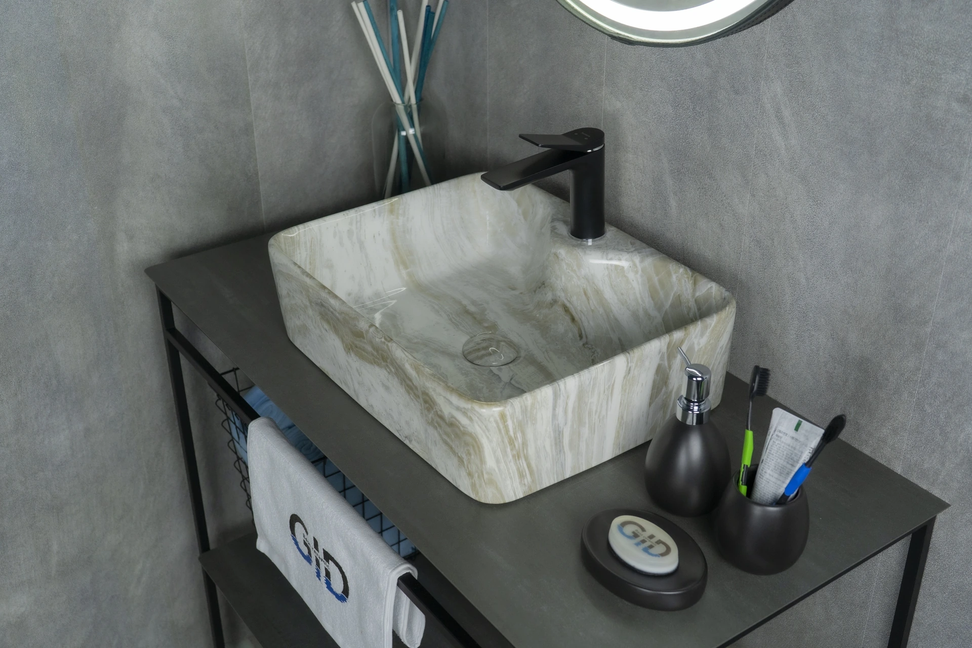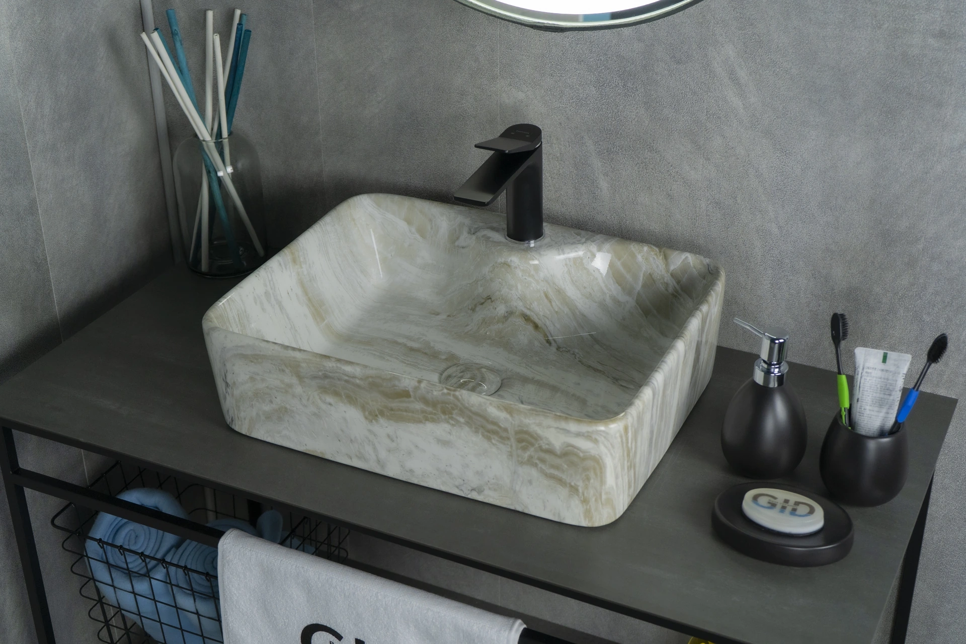 Ссылка на фотографию на белом фоне (https://cloud.mail.ru/public/5xnr/RARDjNjjE) — Ссылка на инструкции и схемы (https://cloud.mail.ru/public/Xvrc/QBXv3i4a5) — Серия Geometrico с прямоугольной формой: стиль и практичность с испанским качеством и европейскими стандартами. Раковина накладная GiD Mnc605 — стильная модель прямоугольной формы, изготовленная из высококачественной керамики с глянцевой поверхностью, имитирующей натуральный камень. Она оснащена отверстием для смесителя, что делает её практичным выбором для ванных комнат в любом стиле. Раковина предназначена для установки на столешницу или мебель, обеспечивая удобство монтажа и гармоничное сочетание с интерьером. Модель отличается долговечностью, простотой ухода и элегантным дизайном, что делает её отличным решением для создания комфортного и стильного
