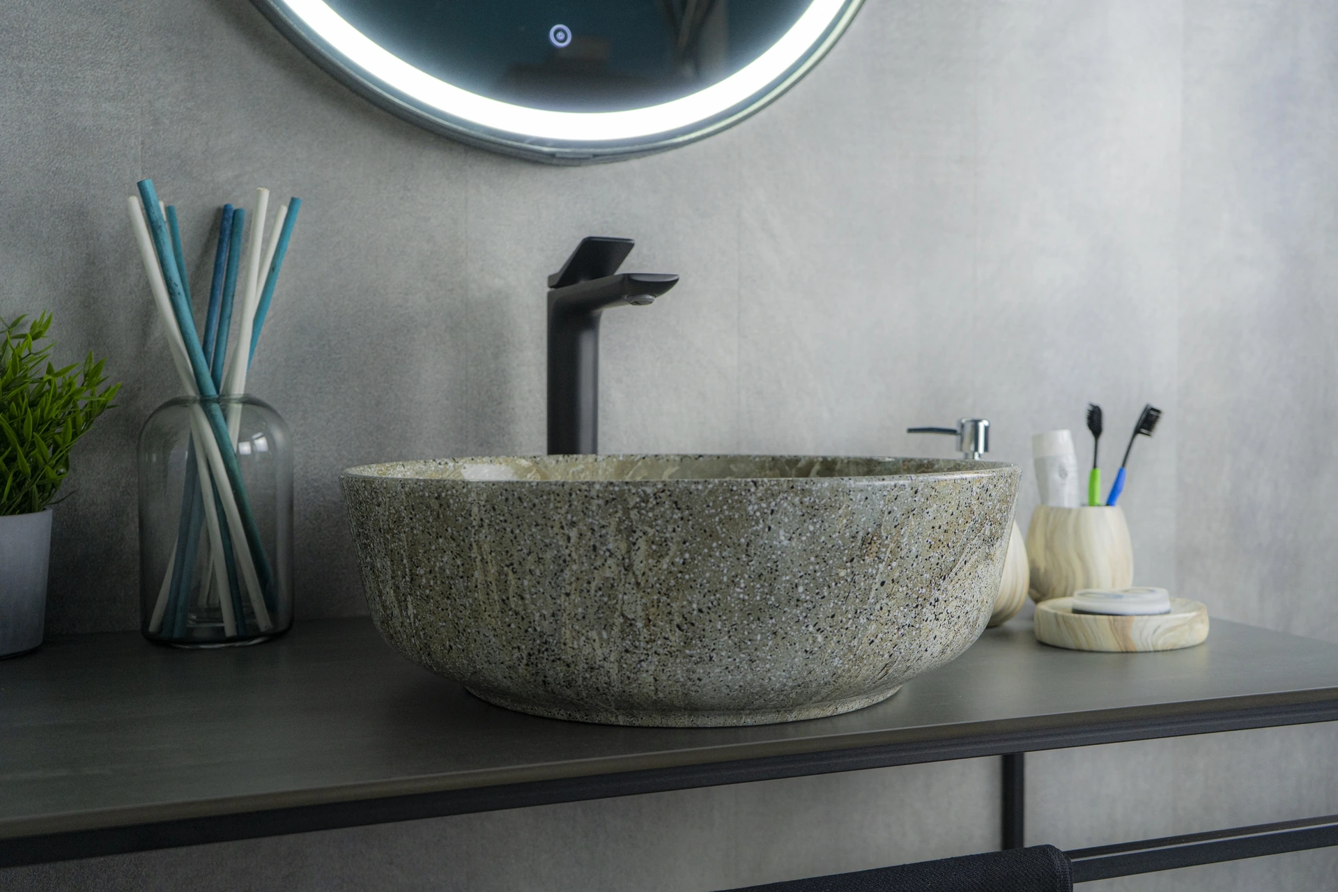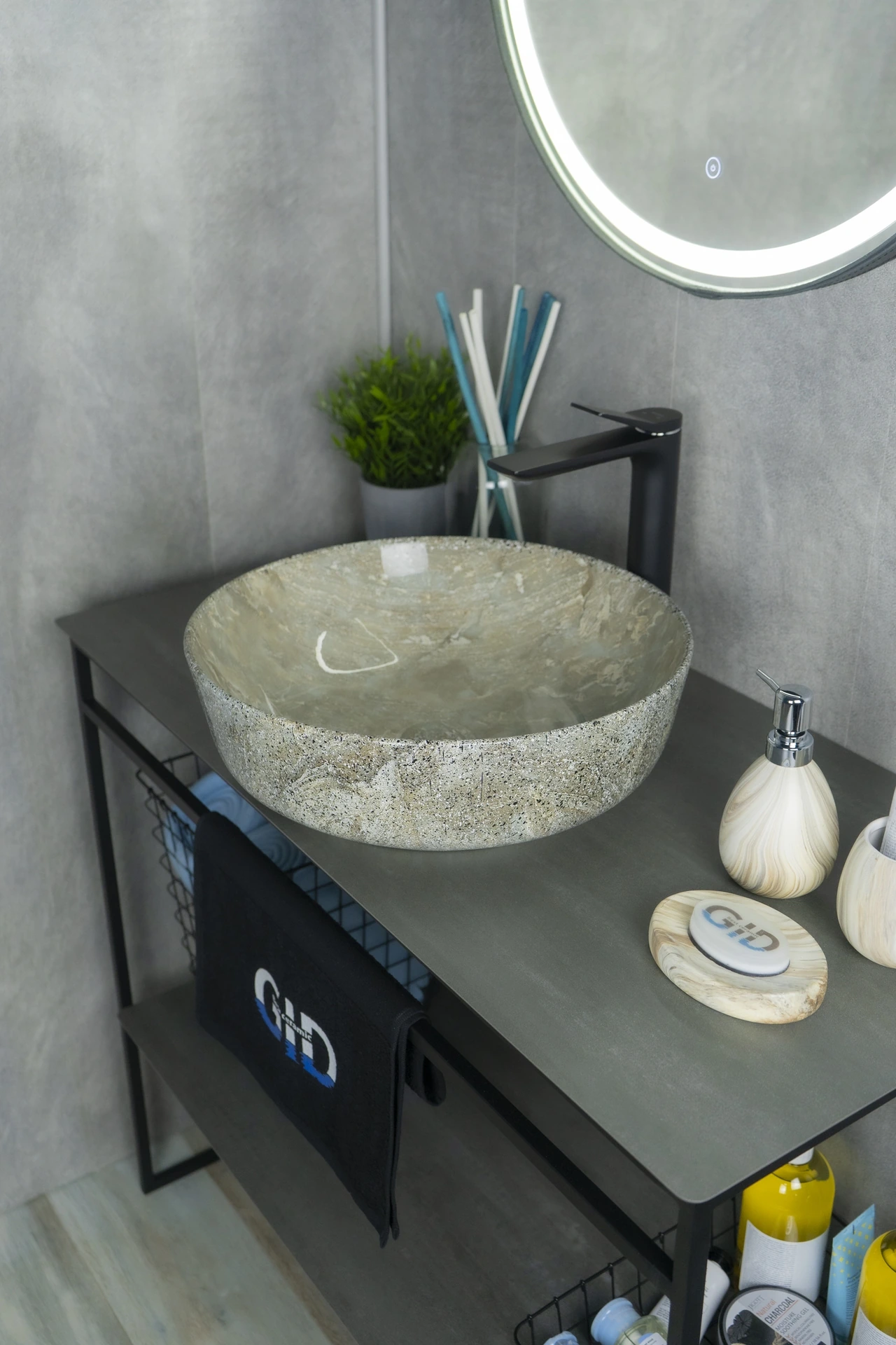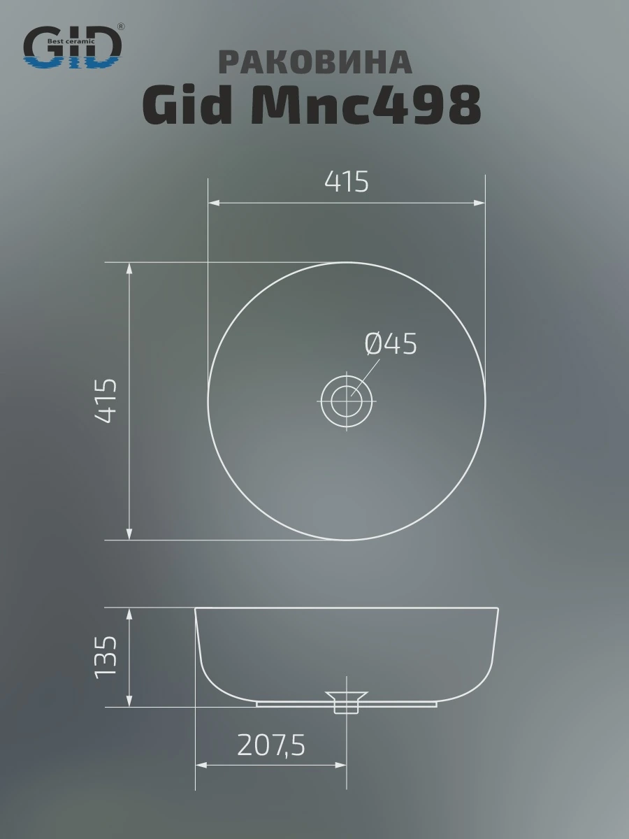 Ссылка на фотографию на белом фоне (https://cloud.mail.ru/public/jqRw/WrGKLe2xn) — Ссылка на инструкции и схемы (https://cloud.mail.ru/public/U2hh/wdsCd4MHY) — Раковины серии Esfera с круглой чашей — это эталон европейских стандартов и испанского мастерства. Раковина накладная GID Mnc498 — это стильная модель, изготовленная из высококачественной керамики. Она имеет круглую форму, что делает её практичным решением для современных ванных комнат. Дизайн раковины имитирует глянцевую поверхность натурального камня, придавая интерьеру элегантность и утончённость. Раковина устанавливается накладным способом на столешницу, что подчёркивает её современный стиль. Благодаря отсутствию отверстия под смеситель раковина позволяет реализовать различные дизайнерские решения по размещению смесителя. Раковина предназначена для бытового использования и гармонично впишется в любой интерьер ванной комнаты.
