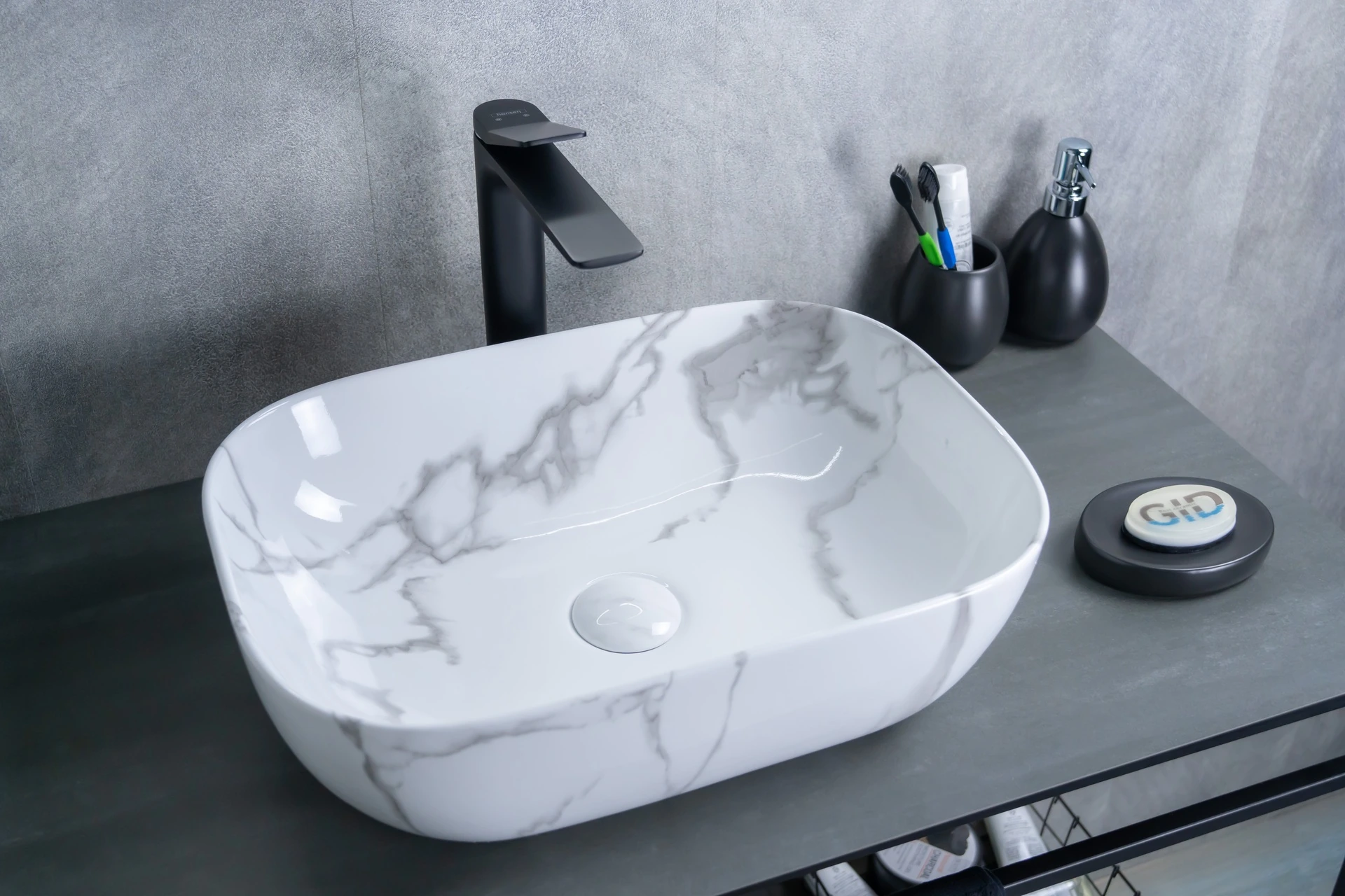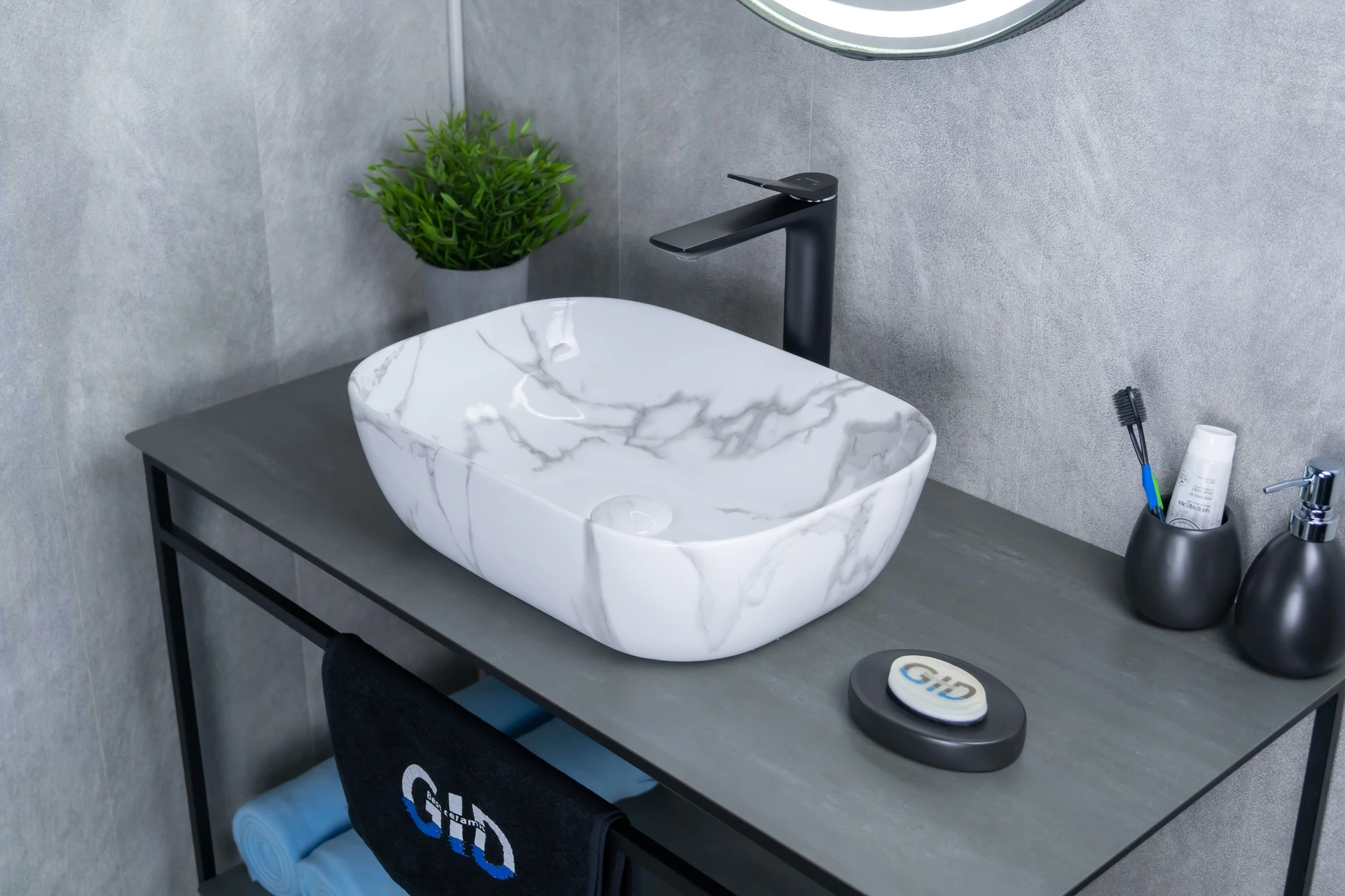 Ссылка на фотографию на белом фоне (https://cloud.mail.ru/public/edAi/Tp9EV7LqK) — Ссылка на инструкции и схемы (https://cloud.mail.ru/public/sugR/UDDvtrk9B) — Серия Geometrico с прямоугольной формой: стиль и практичность с испанским качеством и европейскими стандартами. Раковина накладная GiD Mnc333C — элегантная модель прямоугольной формы, изготовленная из высококачественной керамики с глянцевой поверхностью в белом цвете, создающей эффект натурального камня. Её строгий и современный дизайн идеально подойдёт для ванных комнат в минималистичном или современном стиле. Модель не имеет отверстия под смеситель, что позволяет использовать различные варианты настенных или встраиваемых смесителей, предоставляя свободу в дизайне интерьера. Раковина предназначена для установки на столешницу, подчёркивая стильный и функциональный интерьер ванной комнаты.