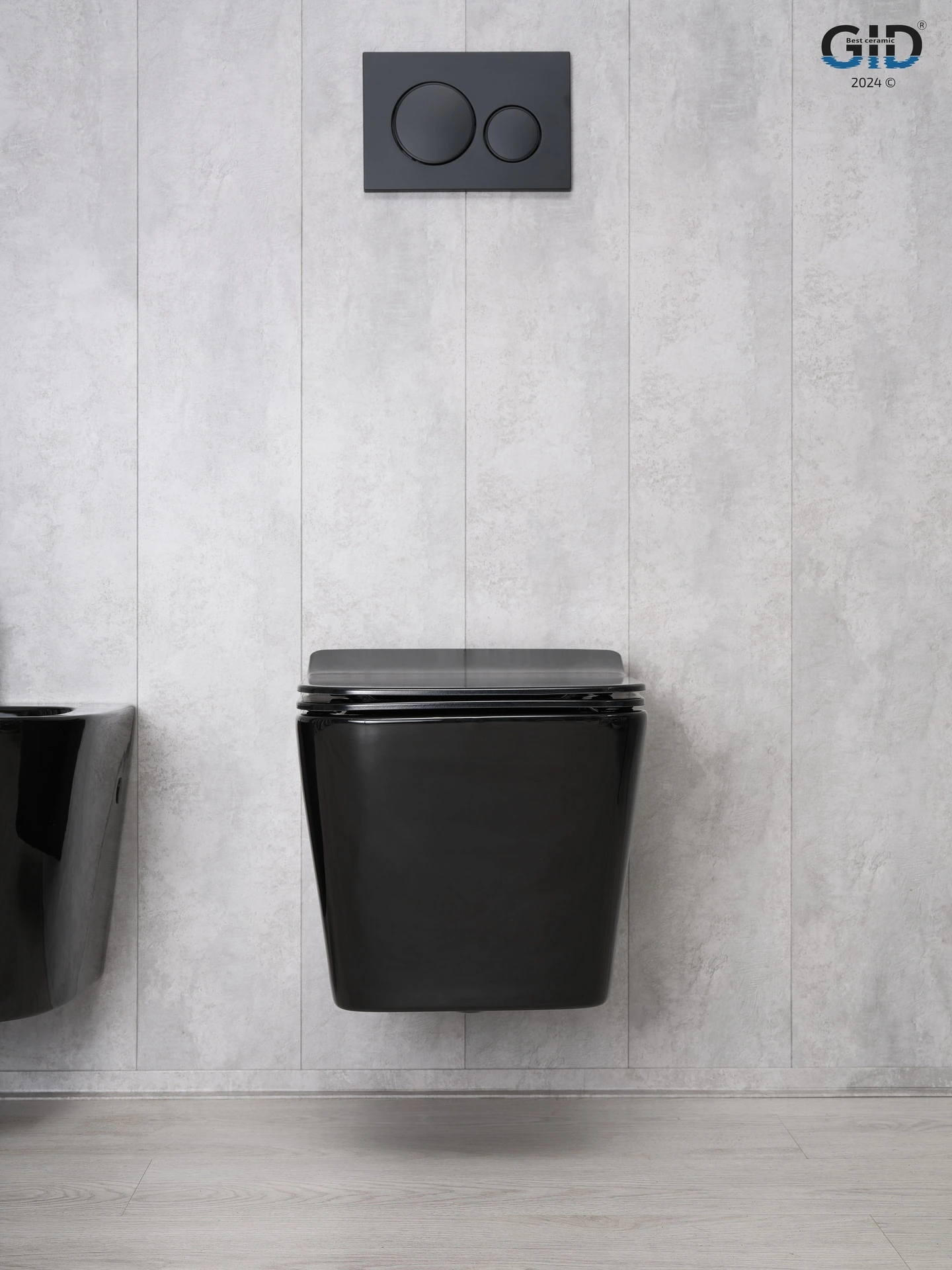 Ссылка на фотографию на белом фоне (https://gid.com.ru/d/tr2144bl.jpg) — Ссылка на инструкции и схемы (https://cloud.mail.ru/public/7h5z/y9kK5aLsM) — Серия Cuadrado — образец современного дизайна и испанского качества. Соответствие европейским стандартам гарантирует их долговечность. Подвесной безободковый унитаз GiD Tr2144BL - это модель с горизонтальным выпуском, выполненная из мелкопористой керамики в черном глянцевом цвете. Оснащена быстросъёмным сиденьем из дюропласта с функцией микролифта, обеспечивающей плавное и бесшумное опускание крышки. Благодаря антигрязевому покрытию и воронкообразной квадратной чаше унитаз обеспечивает высокий уровень гигиены и легкость ухода. Комплект: подвесной унитаз GiD Tr2144BL с креплениями для скрытого монтажа; сиденье с креплениями.