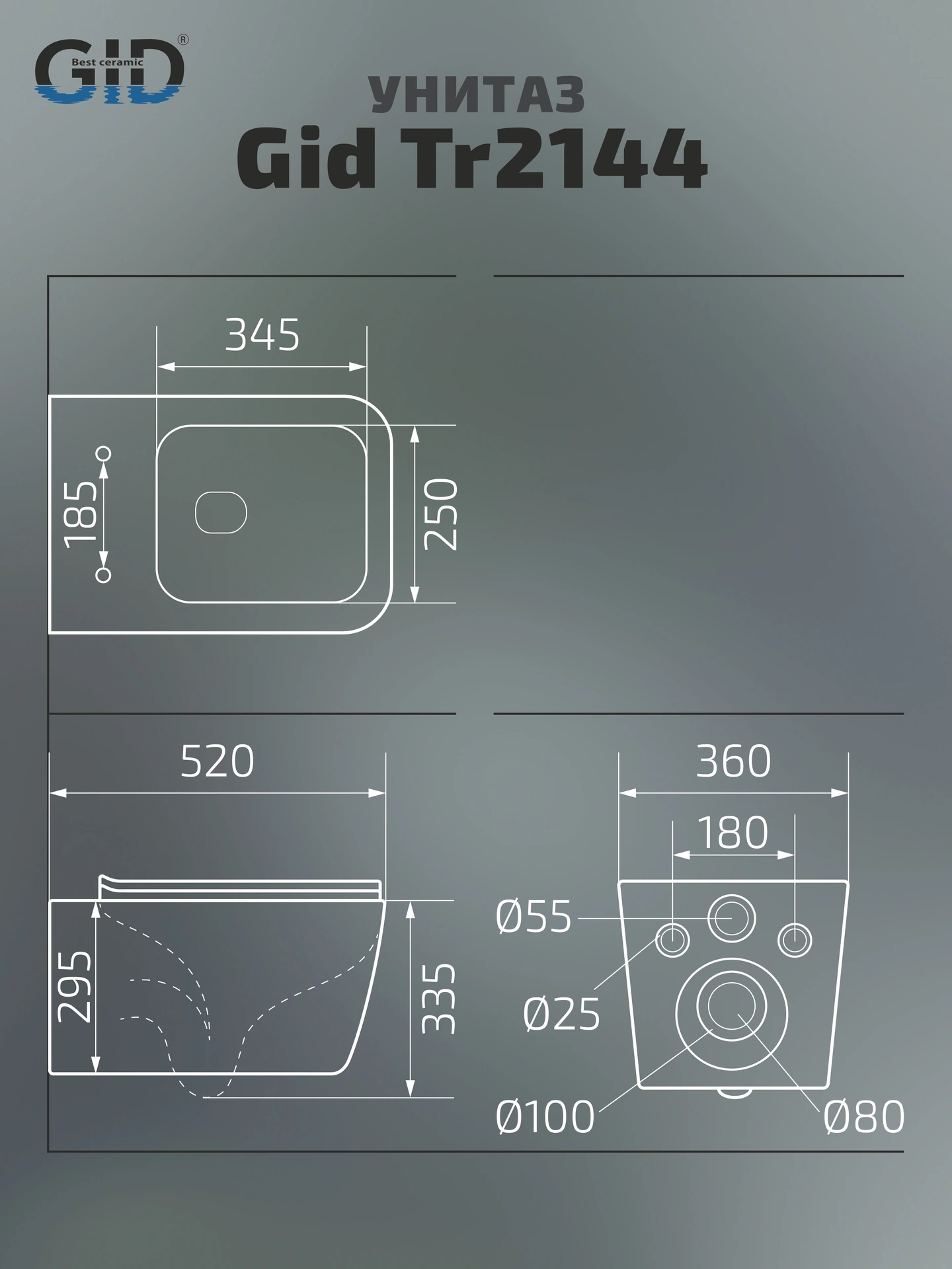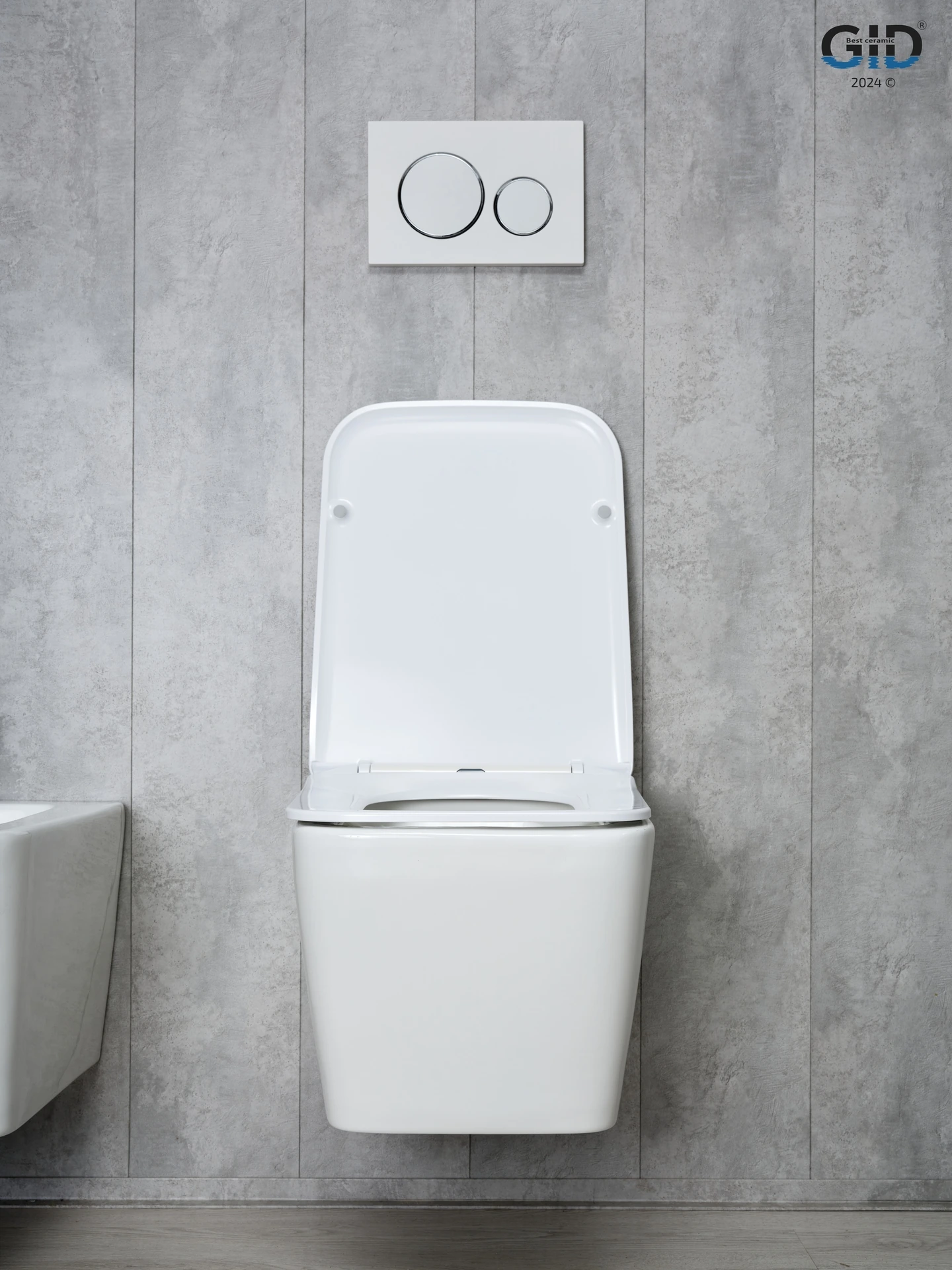 Ссылка на фотографию на белом фоне (https://gid.com.ru/d/2144.jpg) — Ссылка на инструкции и схемы (https://cloud.mail.ru/public/7h5z/y9kK5aLsM) — Серия Cuadrado — образец современного дизайна и испанского качества. Соответствие европейским стандартам гарантирует их долговечность. Подвесной безободковый унитаз GiD Tr2144 - это модель с горизонтальным выпуском, выполненная из мелкопористой керамики в белом глянцевом цвете. Оснащена быстросъёмным сиденьем из дюропласта с функцией микролифта, обеспечивающей плавное и бесшумное опускание крышки. Благодаря антигрязевому покрытию и воронкообразной квадратной чаше унитаз обеспечивает высокий уровень гигиены и легкость ухода. Комплект: подвесной унитаз GiD Tr2144 с креплениями для скрытого монтажа; сиденье с креплениями.