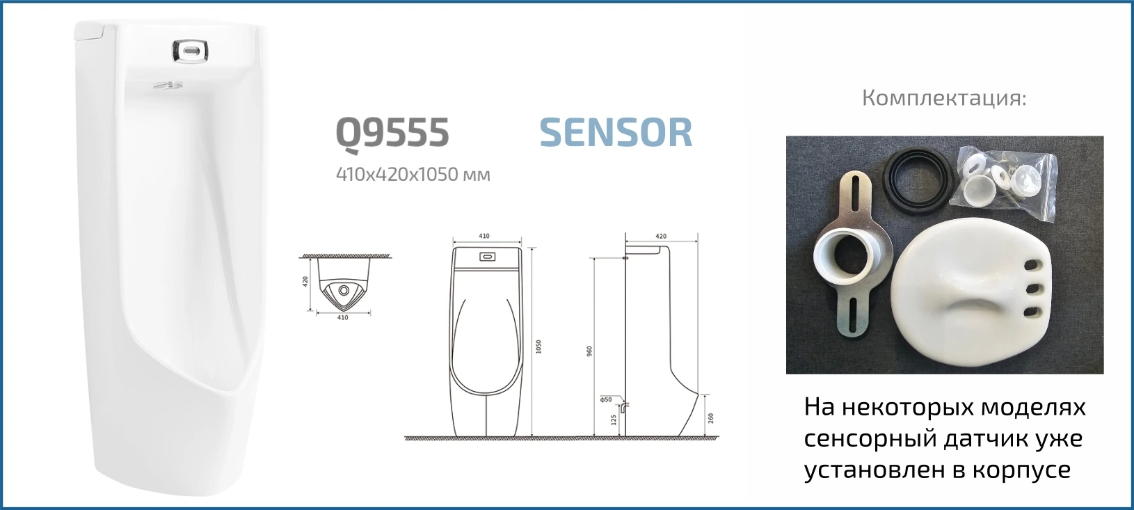 Ссылка на СЕРТИФИКАТ СООТВЕТСТВИЯ на электрику (https://gid.com.ru/thumb/2/E0XPe2hetiGZjo-wcUssZw/r/d/dobrovolnyj_sertifikat.jpg) — Ссылка на инструкции и схемы (https://cloud.mail.ru/public/zefD/gwshC8Muc) — Publico — коллекция писсуаров, выполненная в строгом и лаконичном дизайне. Испанское качество и европейские стандарты соответствуют самым высоким требованиям эксплуатации. Напольный сенсорный писсуар GiD Q9555 оснащен встроенным сенсорным датчиком для автоматической активации слива. Изготовленный из высококачественной керамики белого цвета, он обладает современным дизайном, что позволяет ему гармонично вписаться в различные интерьеры. Писсуар GID Q9555 идеально подходит для современных ванных комнат и общественных санузлов, обеспечивая гигиеничность и удобство использования благодаря автоматическому сенсорному смыву.