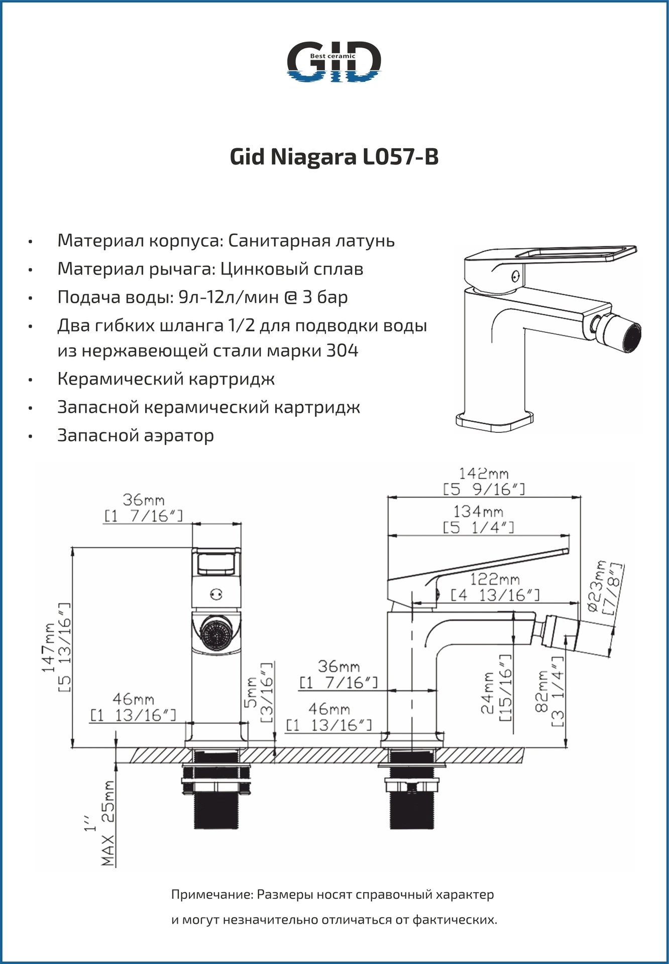 Ссылка на фотографию на белом фоне (https://gid.com.ru/d/l057-bm-b_1.jpg) — Ссылка на инструкции и схемы (https://gid.com.ru/d/niagara_l057-b.jpg) — Cascada – Смелый дизайн и нестандартные формы сочетаются с испанским качеством и европейскими стандартами. Эти смесители превращают каждый поток воды в динамичное произведение искусства. Смеситель для биде GID Niagara L057-BM-B — это практичное и стильное решение для современных ванных комнат. Корпус из высококачественной латуни с черным матовым покрытием обеспечивает устойчивость к коррозии и механическим повреждениям. Интегрированный аэратор создаёт мягкий и экономичный поток воды, а удобный рычаг управления гарантирует точное регулирование температуры и напора. Компактный и элегантный дизайн позволяет модели идеально вписаться в любой интерьер, подчёркивая его современный стиль. Комплект: смеситель GID Niagara L057-BM-B; 2 шланга подачи воды, дополнительные аэратор и керамический картридж; шестигранный ключ.