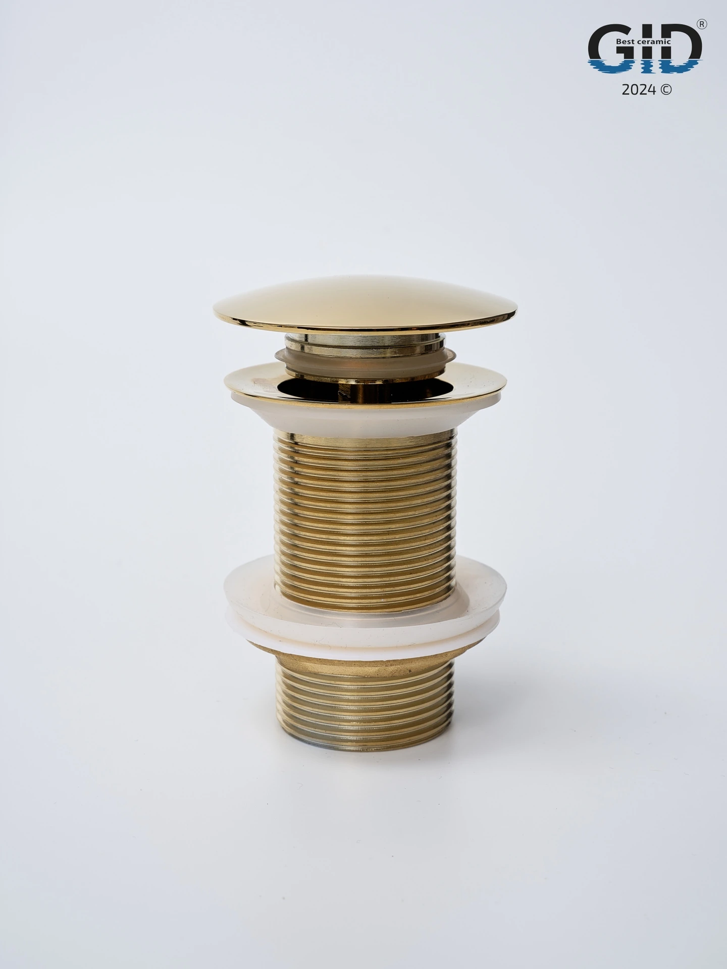 Ссылка на фотографию на белом фоне (https://cloud.mail.ru/public/2aVa/VLUBaPe4x) — Ссылка на инструкции и схемы (https://gid.com.ru/d/shemaspereliv2.jpg) — Minucia — серия аксессуаров, созданных в лучших традициях испанского качества и соответствующих требованиям европейских стандартов, обеспечивающие длительный срок службы. Донный клапан GiD G100 — это донный клапан, предназначенный для раковин без перелива. Изготовлен из прочной латуни, а металлическая шляпка выполнена в золотистом глянцевом цвете, что придает ему современный и элегантный вид. Механизм "click clack" обеспечивает удобное и надежное закрытие сливного отверстия. Донный клапан идеально подходит для современных решений ванных комнат, сочетая в себе функциональность и стильный дизайн. Его установка проста и не требует специальных навыков, что делает его доступным выбором для большинства пользователей.