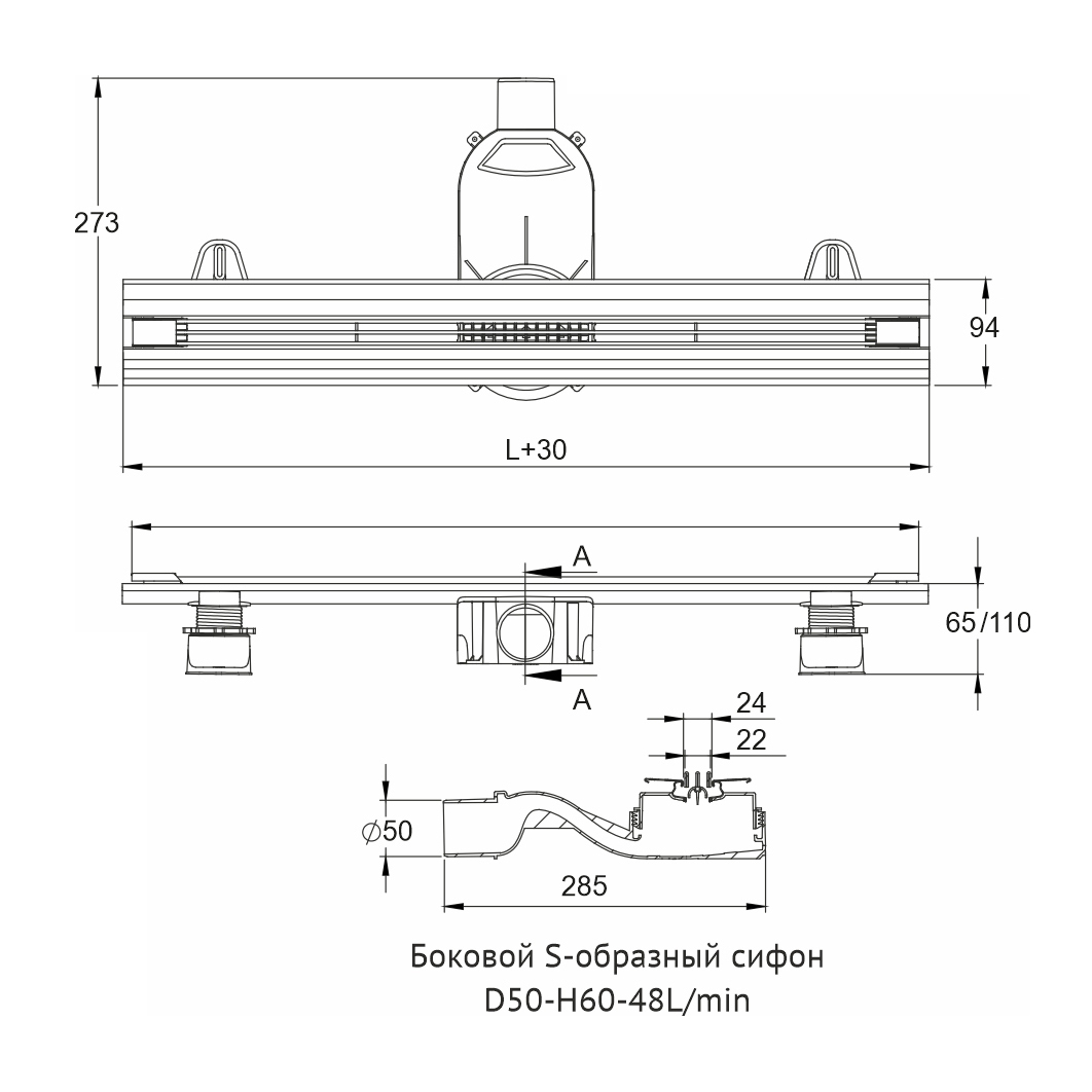 ● Съемная сетка для волос (грязеуловитель) предотвращает попадание мусора в сифон и позволяет легко проводить очистку желоба.