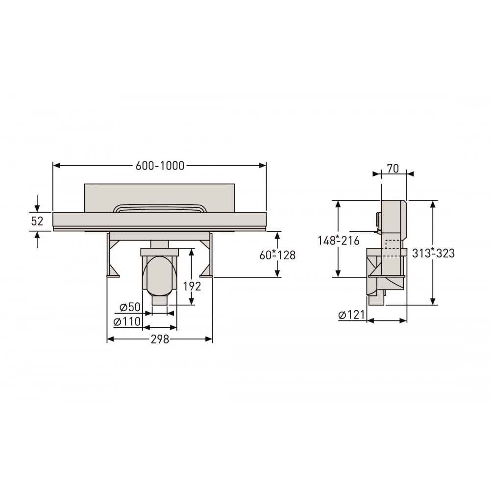 вертикальный выпуск D50/105 H50, пропускная способность 48л/мин, монтаж 360°