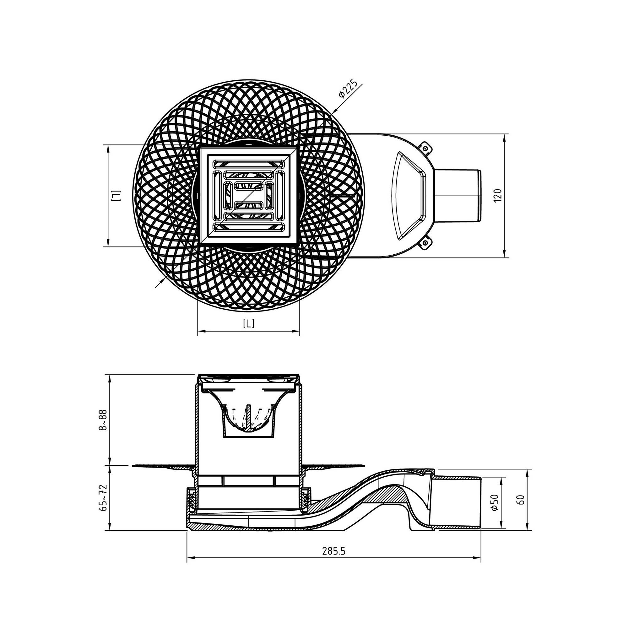 горизонтальный выпуск D50 H60, пропускная способность 42л/мин, монтаж 360°