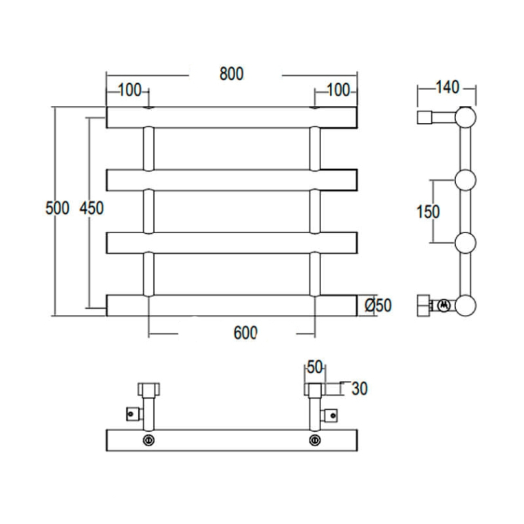 Полотенцесушитель водяной Margaroli Orizzonti 80x50 14426004GO золото