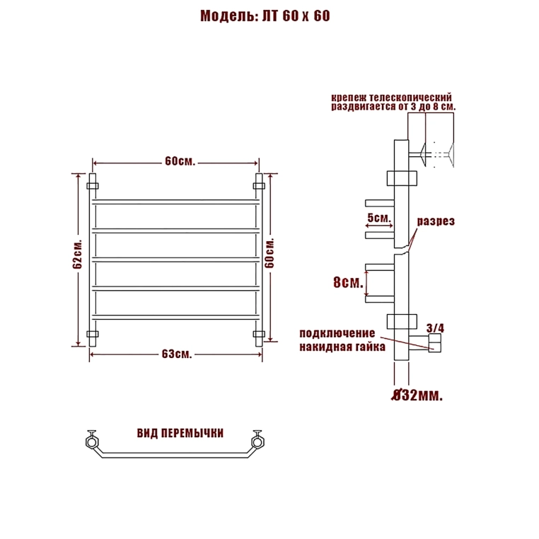 Полотенцесушитель водяной Ника TRAPEZIUM 63x62 ЛТ 60/60 хром