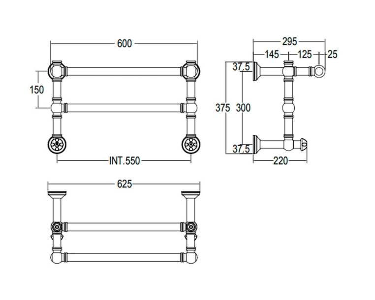 Полотенцесушители выполнены из латунных труб соответствующей формы, которые собираются, свариваются и тестируются посредством гидропневматических систем.