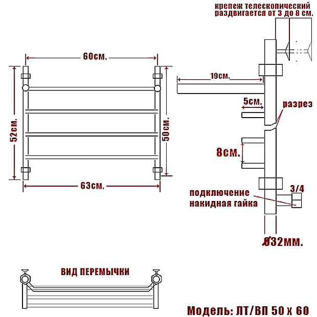 Полотенцесушитель водяной Ника TRAPEZIUM 63x52 ЛТ ВП 50/60 хром
