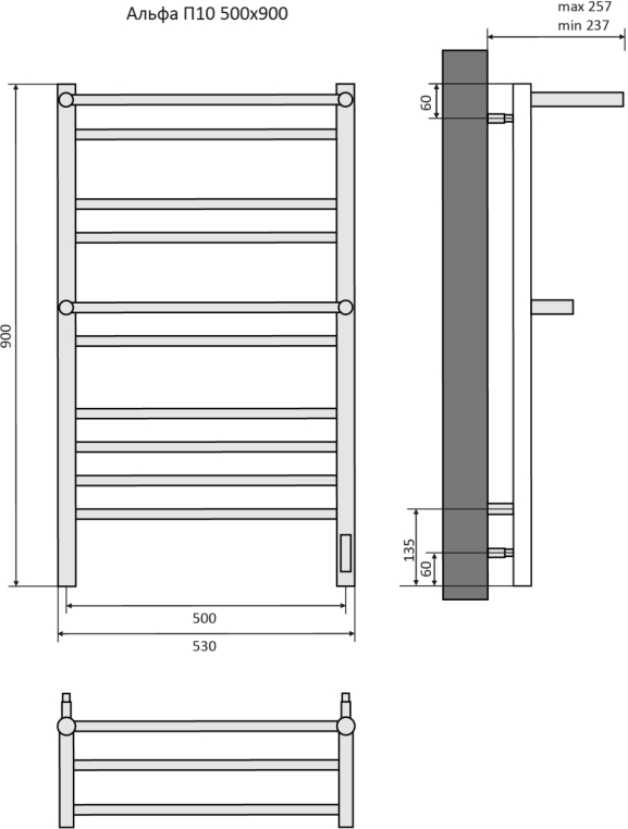 Полотенцесушитель электрический Aquatek Альфа П10 500х900 AQ EL RRP1090CH
