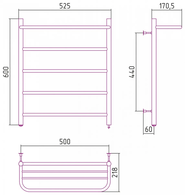 Полотенцесушитель электрический Сунержа Стилье Формат 30 П 600х500 00530-6050
