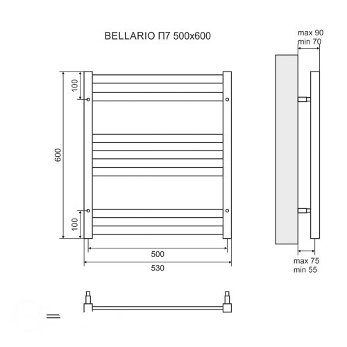 Полотенцесушитель электрический Lemark Bellario П7 500x600, левый/правый, черный LM68607EBL (LM68607EBL)