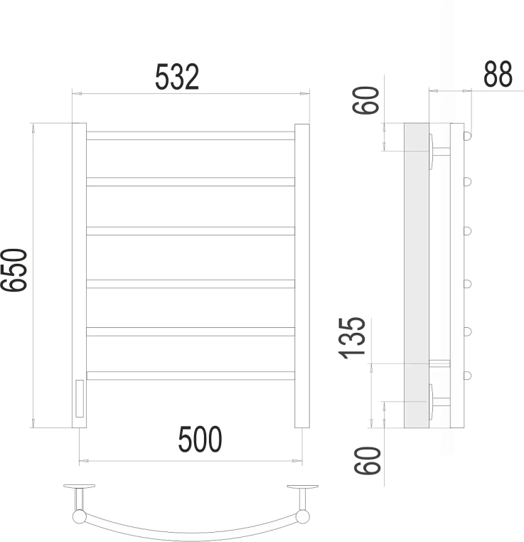 • Межосевое расстояние полотенцесушителя, мм: 500