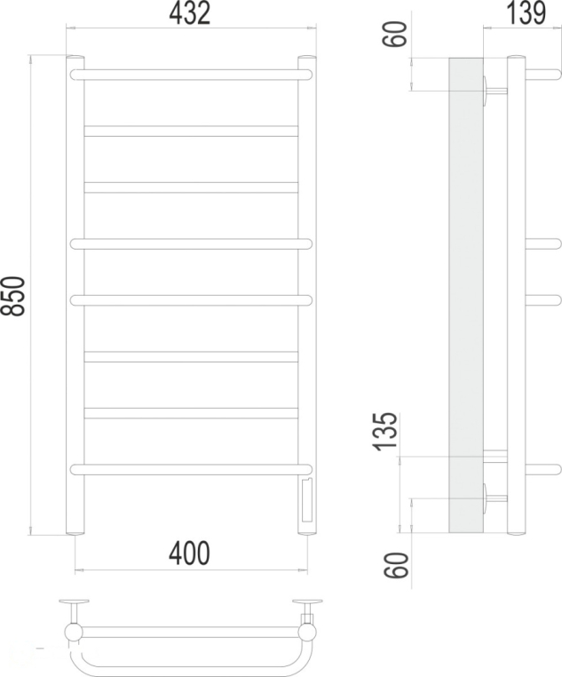 • Межосевое расстояние полотенцесушителя, мм: 400