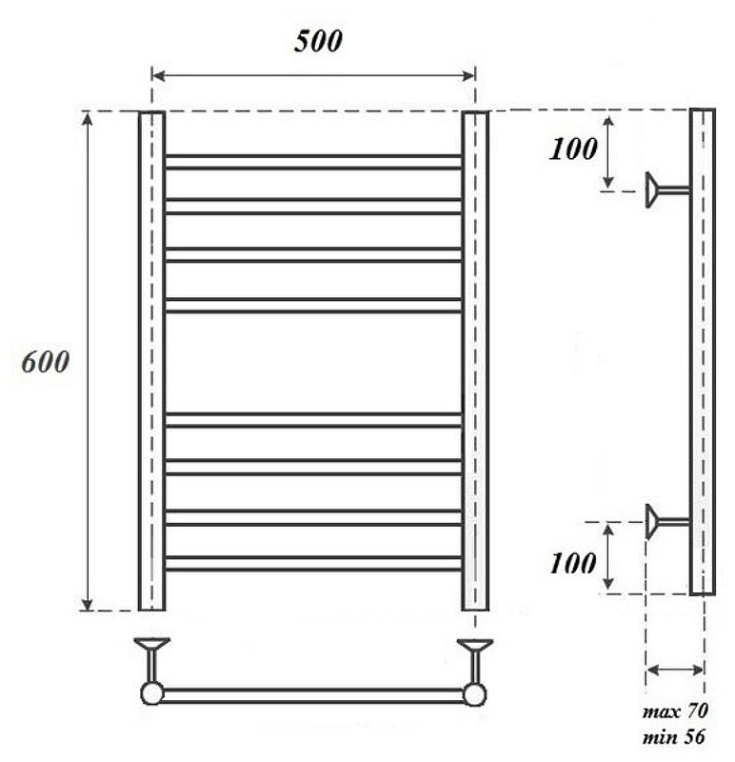 - Межосевое расстояние полотенцесушителя, мм: 500
