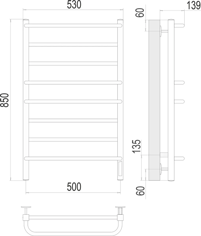• Межосевое расстояние полотенцесушителя, мм: 500