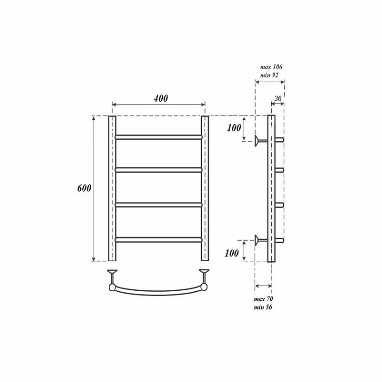 - Межосевое расстояние полотенцесушителя, мм: 400
