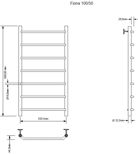 Полотенцесушитель электрический Aquanet Fiona 100х50 Тэн справа 00281996