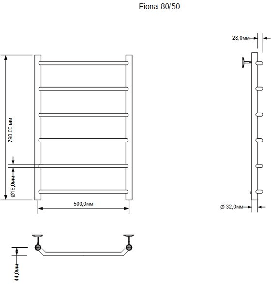 Полотенцесушитель электрический Aquanet Fiona 80х50 Тэн справа 00281995