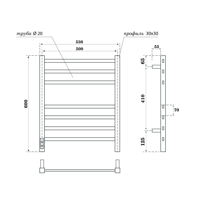 Полотенцесушитель электрический Point Веста П7 500x600 PN70756GR