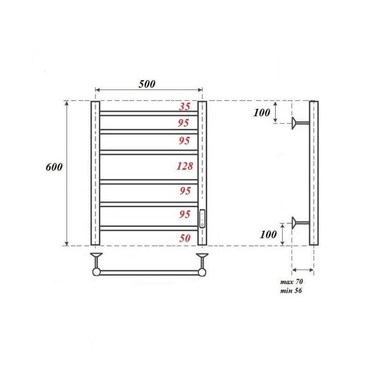 Полотенцесушитель электрический Point Аврора П6 500x600 PN10856BR