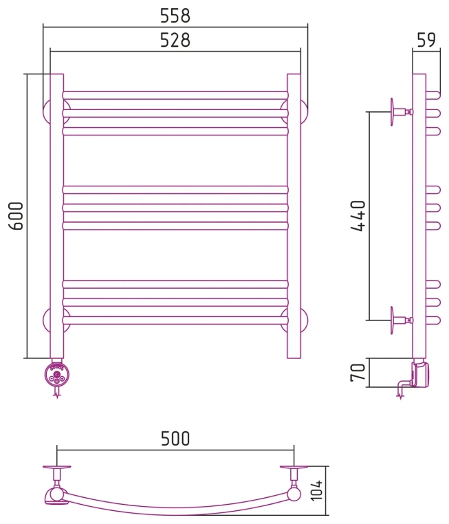 Полотенцесушитель электрический Сунержа Стилье Формат 10 ТП 600х500 00511-6050 тэн слева