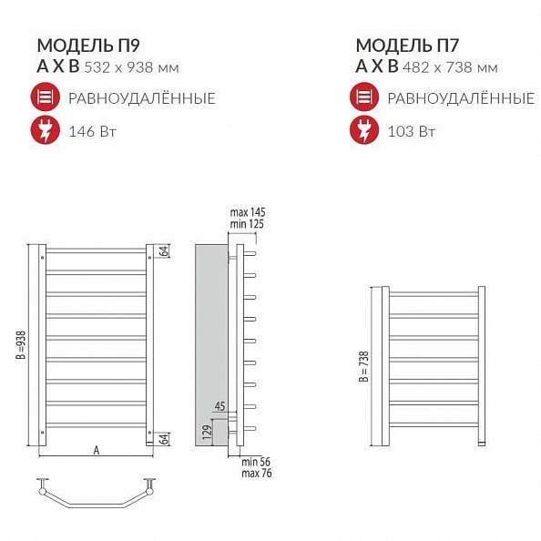 Электрический полотенцесушитель Terminus Виктория П7 450x750 ТЭН Пр.