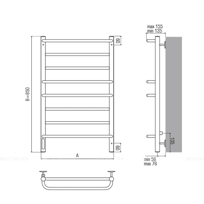 - Межосевое расстояние полотенцесушителя, мм: 500