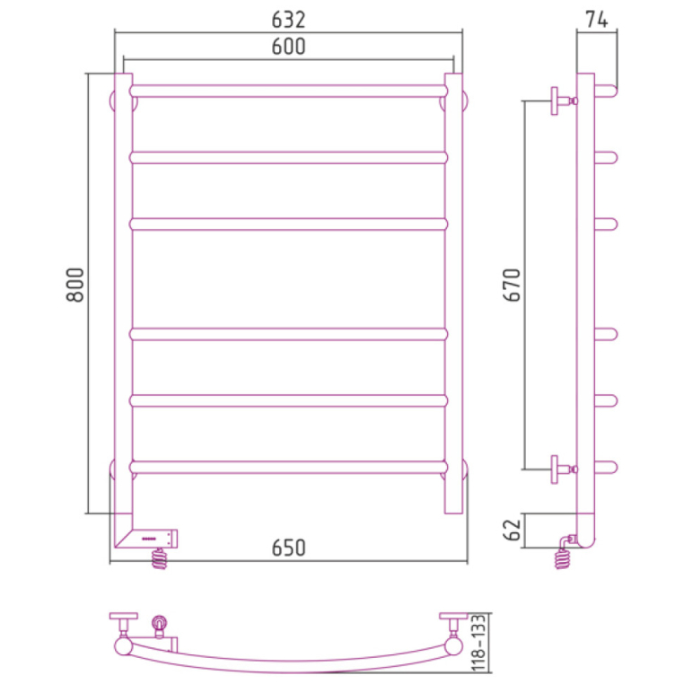 Электрический полотенцесушитель Сунержа Галант 2.0 800x600 ТЭН Пр. (00-5201-8060)