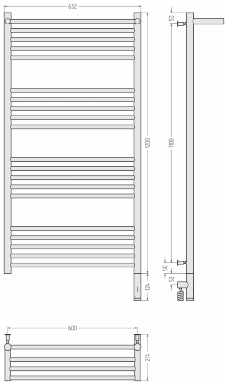 Полотенцесушитель электрический Сунержа Богема с полкой 3.0 1200х600 / МЭМ правый 00-5807-1260