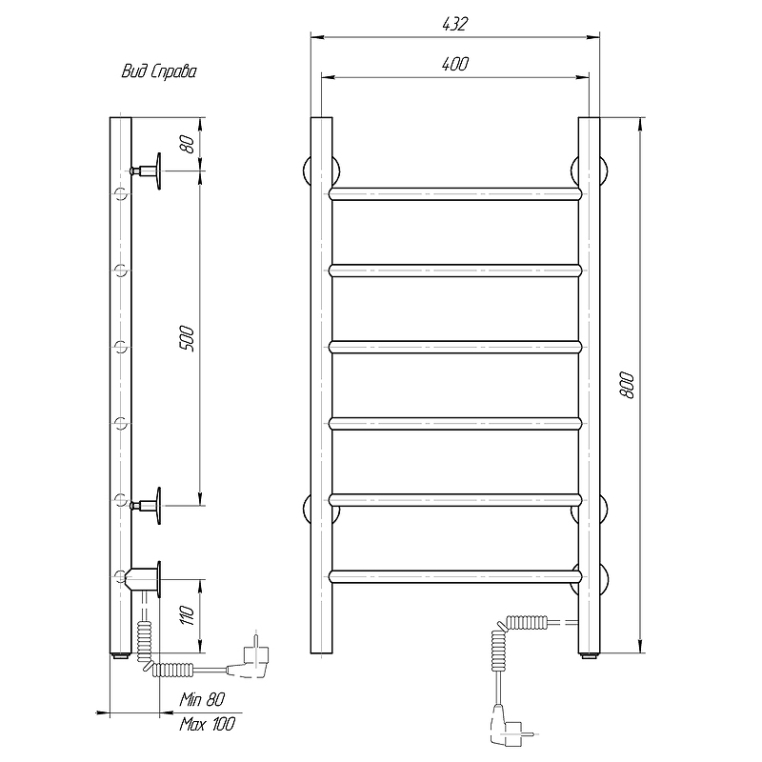 Полотенцесушитель электрический Domoterm Аврора Dmt 109-6 40х80 EK R Тен справа, хром
