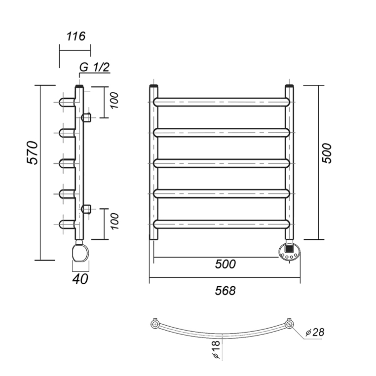 - Размеры, ВхШхГ, мм: 500х500х116