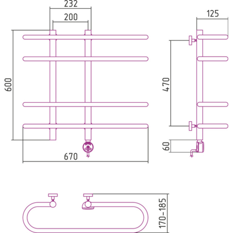 Полотенцесушитель электрический Сунержа Фурор 60x70 R 00-0513-6070