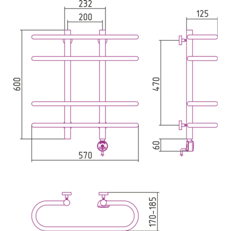 Полотенцесушитель электрический Сунержа Фурор 60x57 00-0511-6060