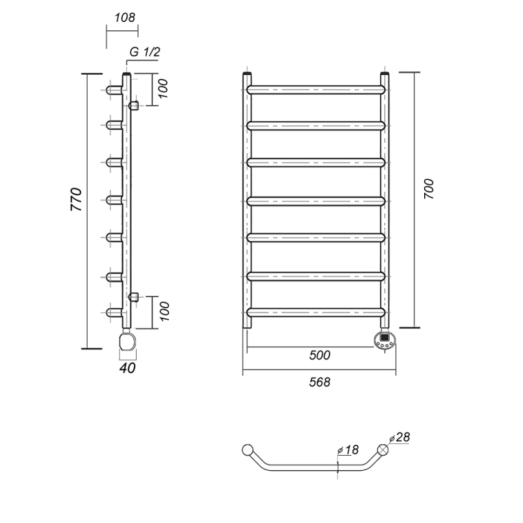 Полотенцесушитель электрический Domoterm Лаура П7 500х700 Абр ER Тен справа, Античная бронза