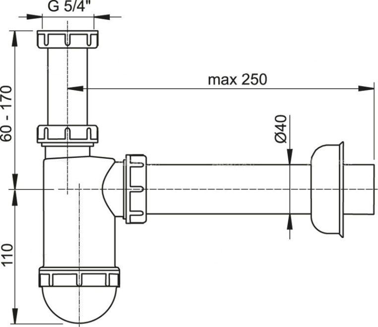 Сифон для умывальника Ø40 c накидной гайкой 5/4" (арт. A43)