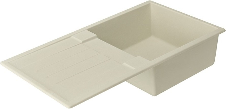 Кухонная мойка в современном дизайне из литого мрамора с одной чашей и крылом.