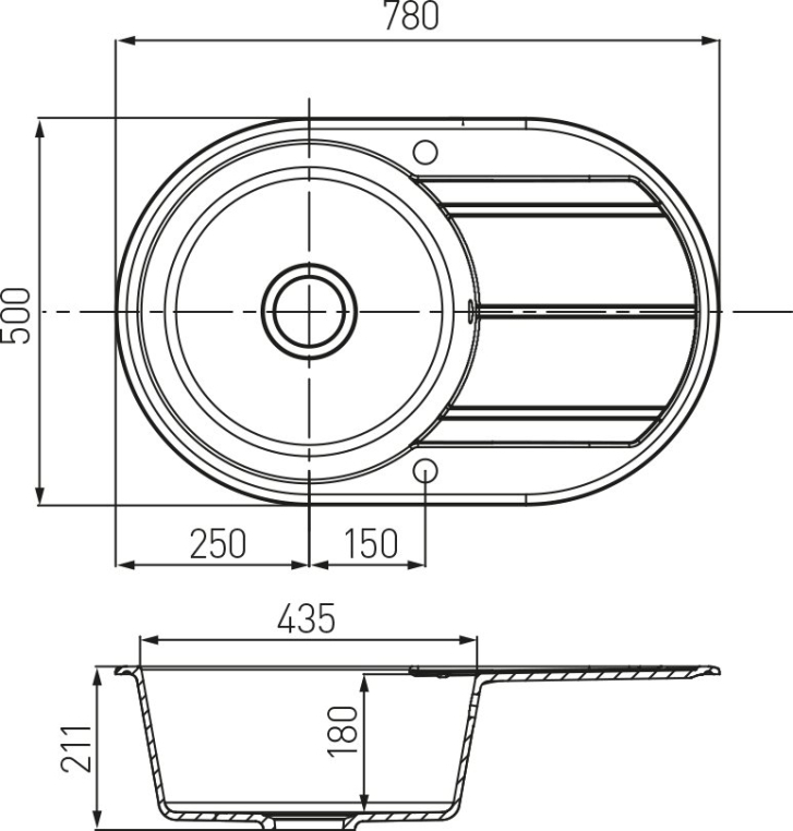 Классическая мойка из литого мрамора с одной чашей и крылом.