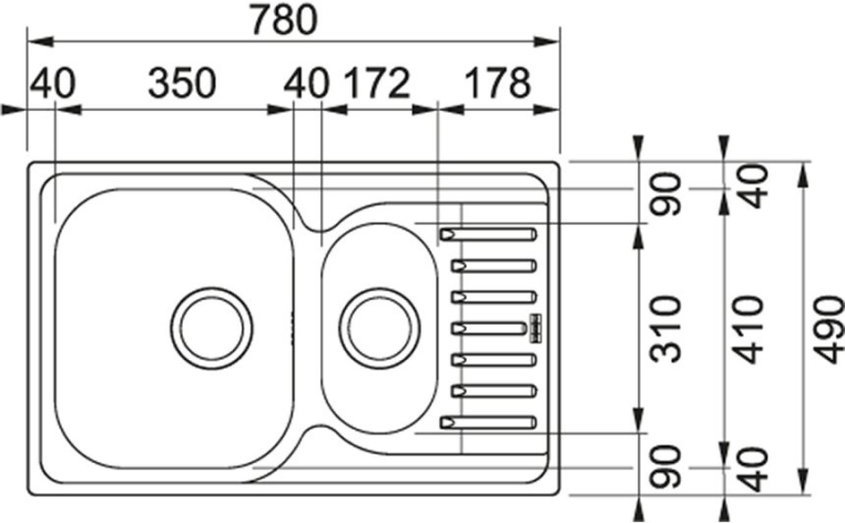 Размер мойки: 78 х 49 см