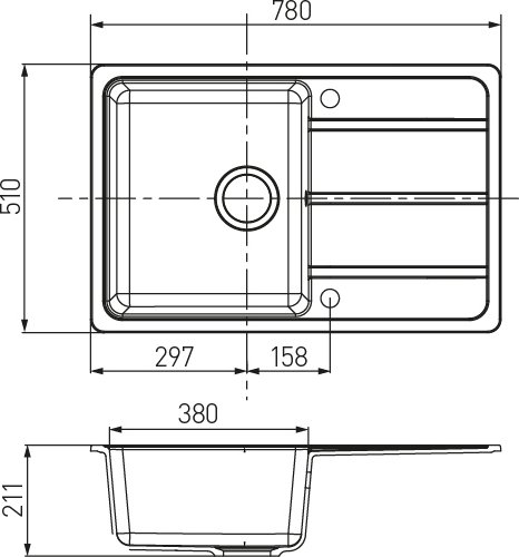 Классическая мойка из литого мрамора с одной чашей и крылом.