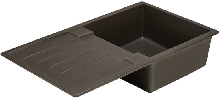 Кухонная мойка в современном дизайне из литого мрамора с одной чашей и крылом.