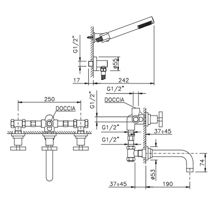 Встраиваемая часть для смесителя со стены Nicolazzi C2203