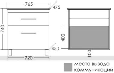 Комплект мебели СанТа Вегас 75 напольная, 2 ящика (226030+Оскар75+123006)